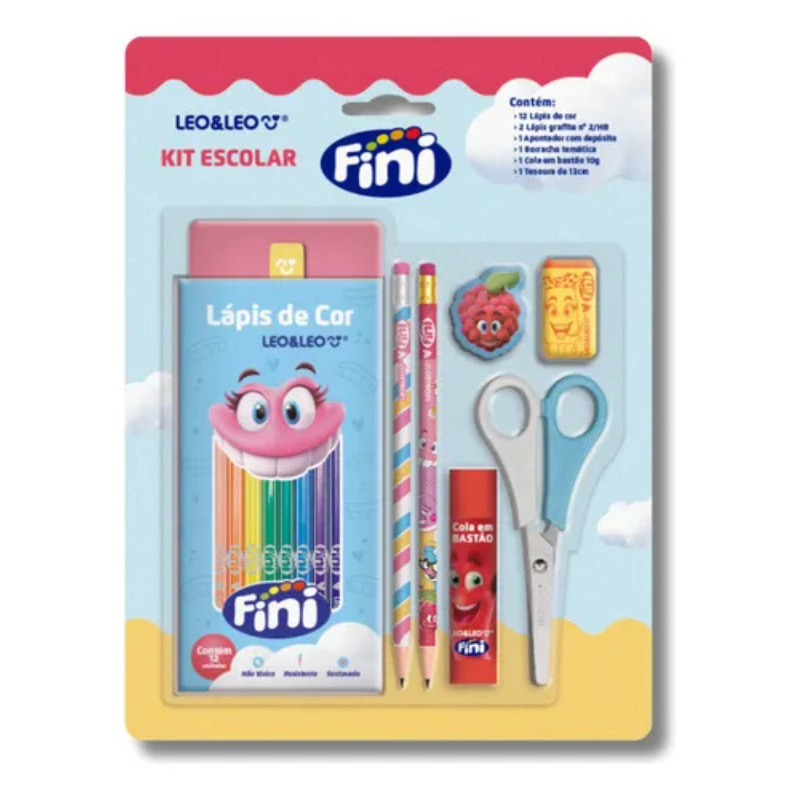 Kit Material Escolar Fini Completo C/Lápis De Cor Tesoura